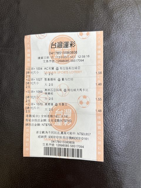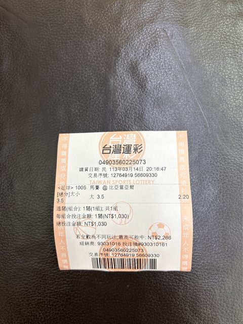 今天已經去運彩店把這陣子贏的錢領一些出來