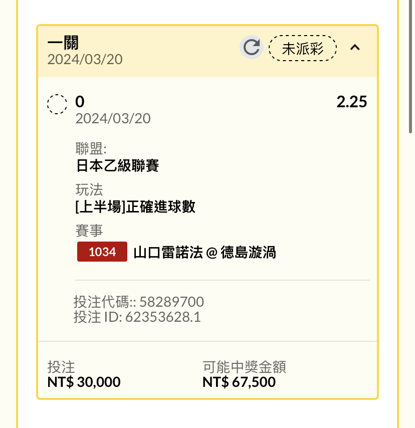 → codoy71: 高賠倒就認了,超低賠如果倒會很不爽 223.138.100.40 03/20 17:01