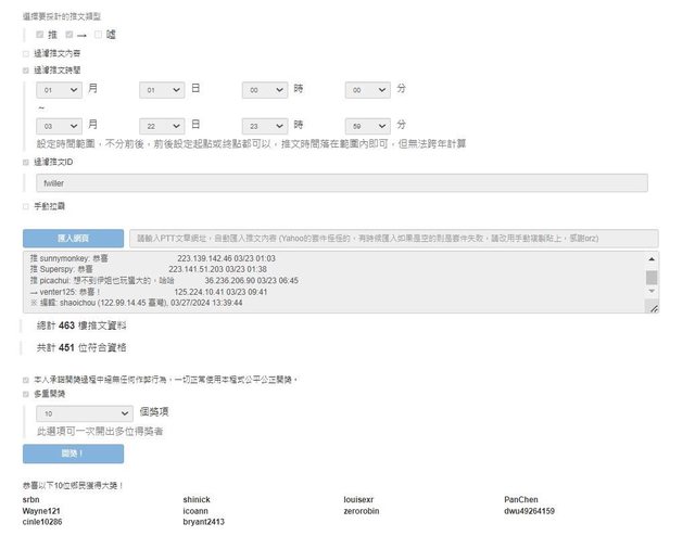 恭喜以上十位