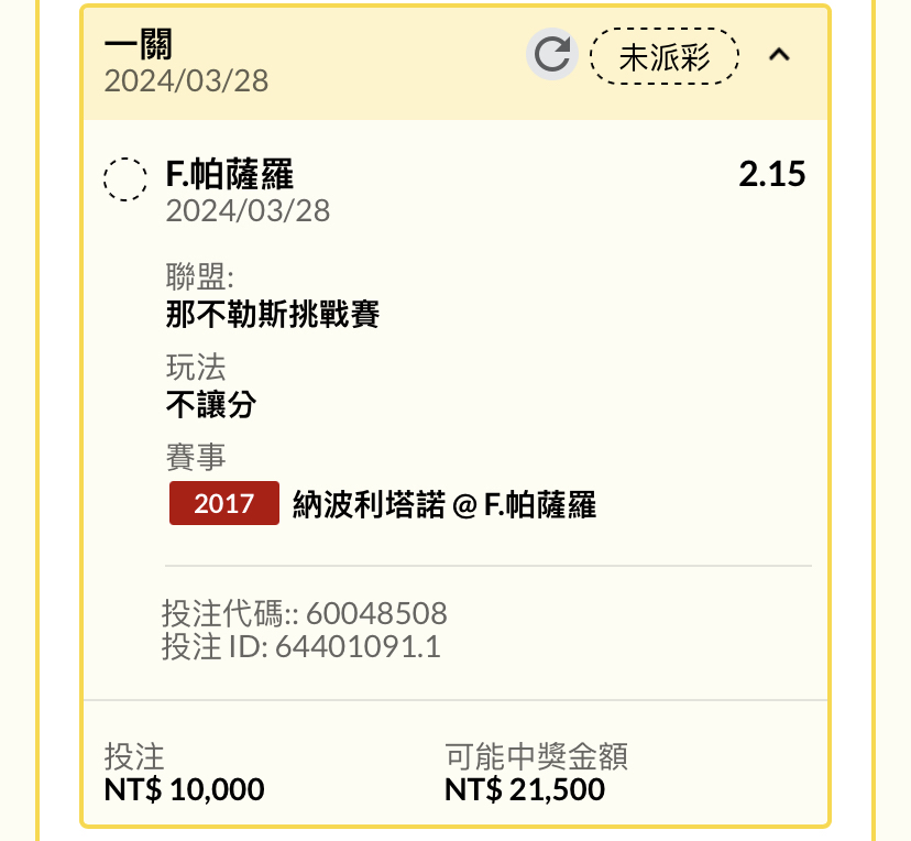 → nsrjchi: 三場第一盤都9.5大 沒串可惜122.121.225.204 03/28 17:57