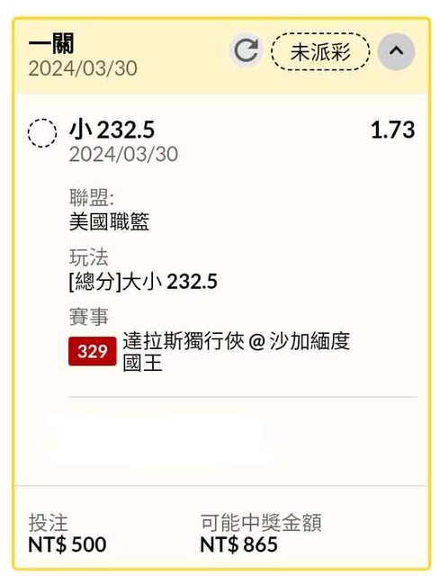 ※ 文章網址: https://www.ptt-website.tw/SportLottery/M.1711760307.A.E12