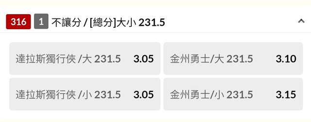 達拉斯獨行俠不讓分 / 大231.5 (3.05)