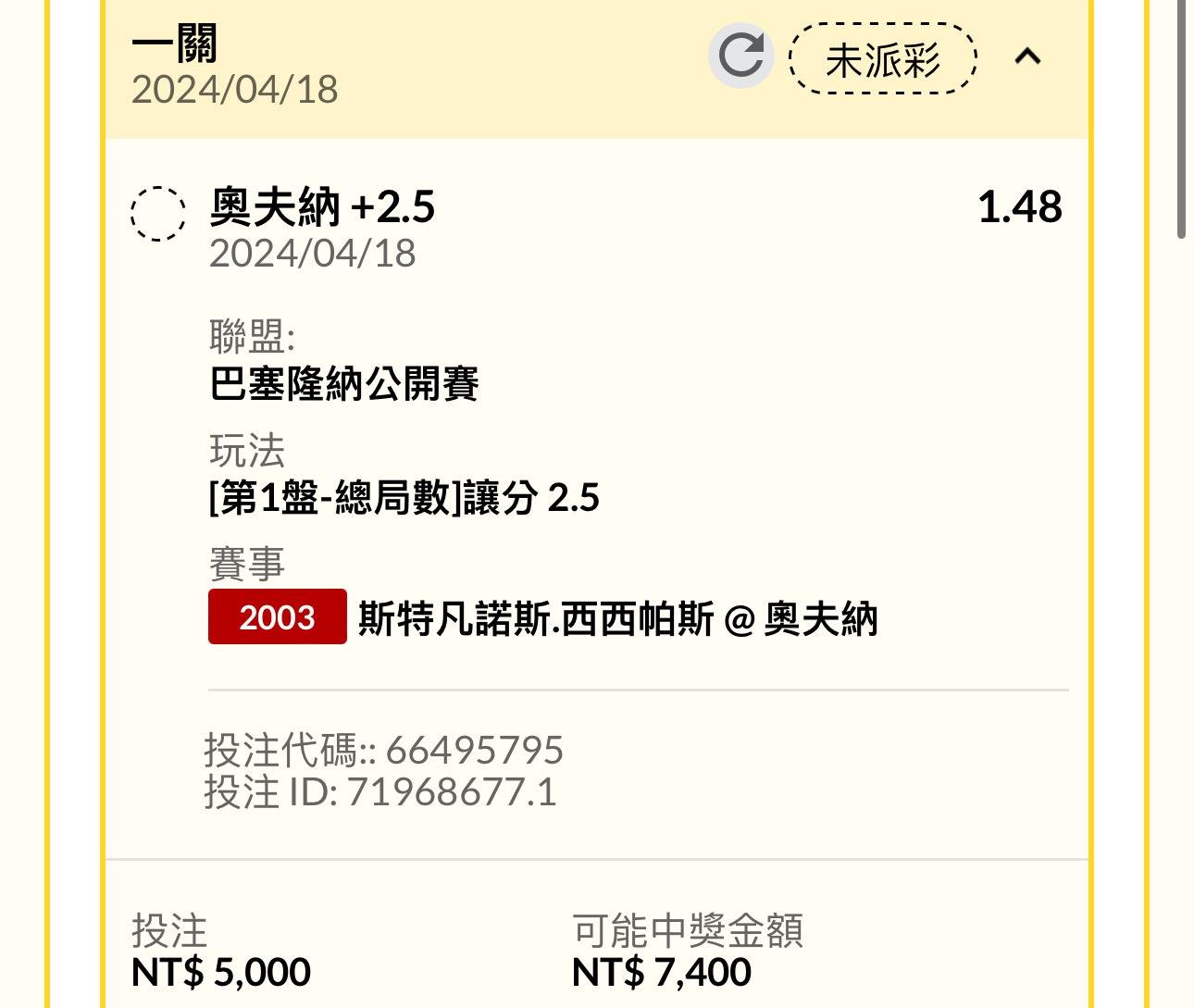 → simonangel: 這場收三場 第一盤主+2.5 全場22.5小 1.169.150.95 04/18 01:59