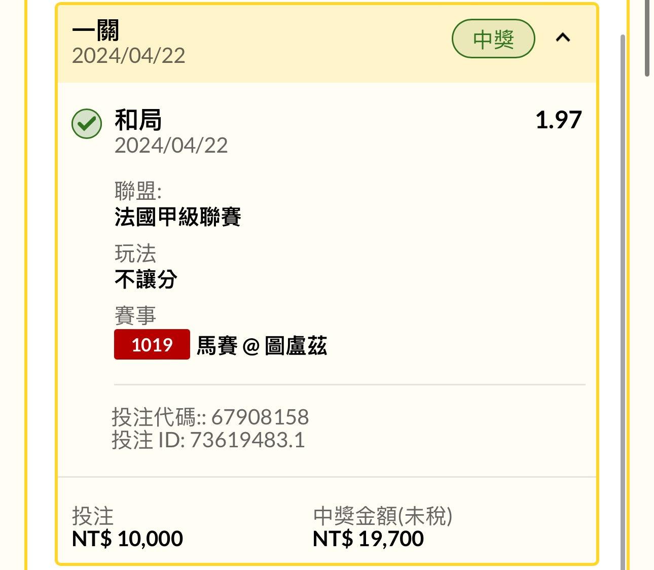 → lotterywin: 我已經報啦 我看三球103.234.206.243 04/22 02:05
