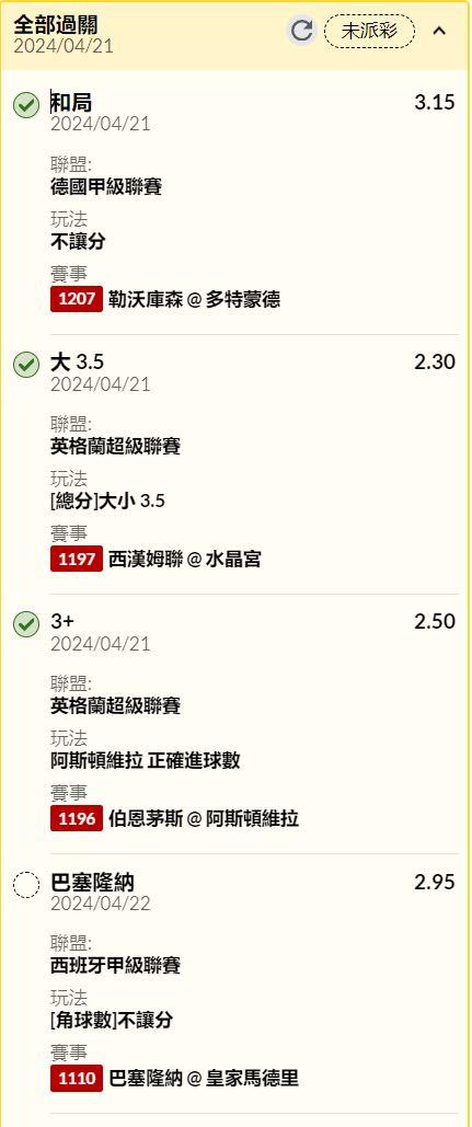 → nick04140414: 我買2.15,然後皇馬3+買太快了1.75 123.194.150.71 04/22 05:00