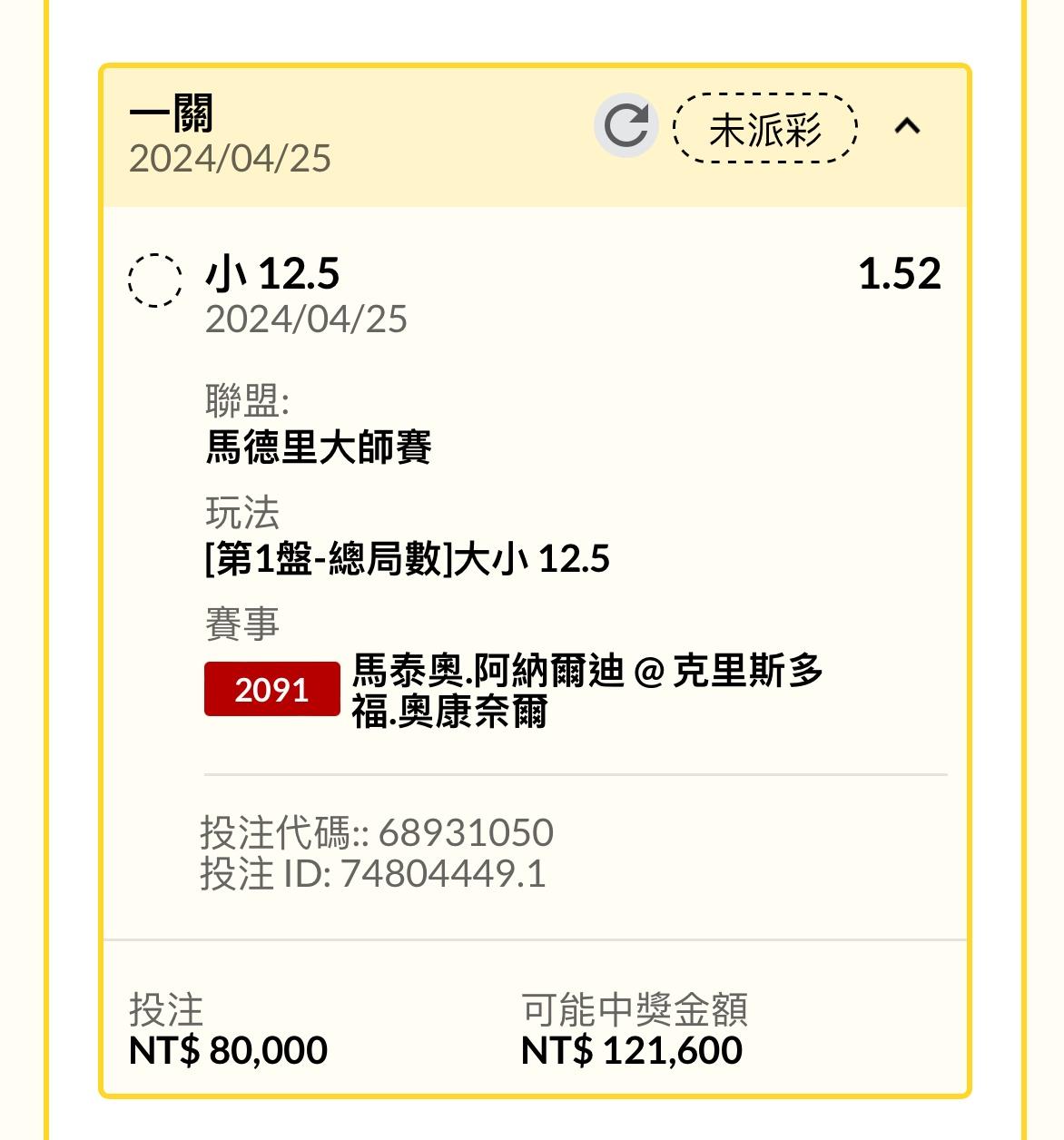 推 ericboy0225: Set1大9.5 1.68收收 114.36.38.174 04/25 20:04