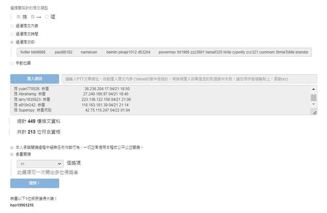 無重複帳號參與抽獎