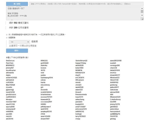 恭喜以上 一百位得獎者