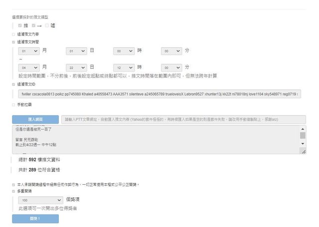無重複帳號參與抽獎