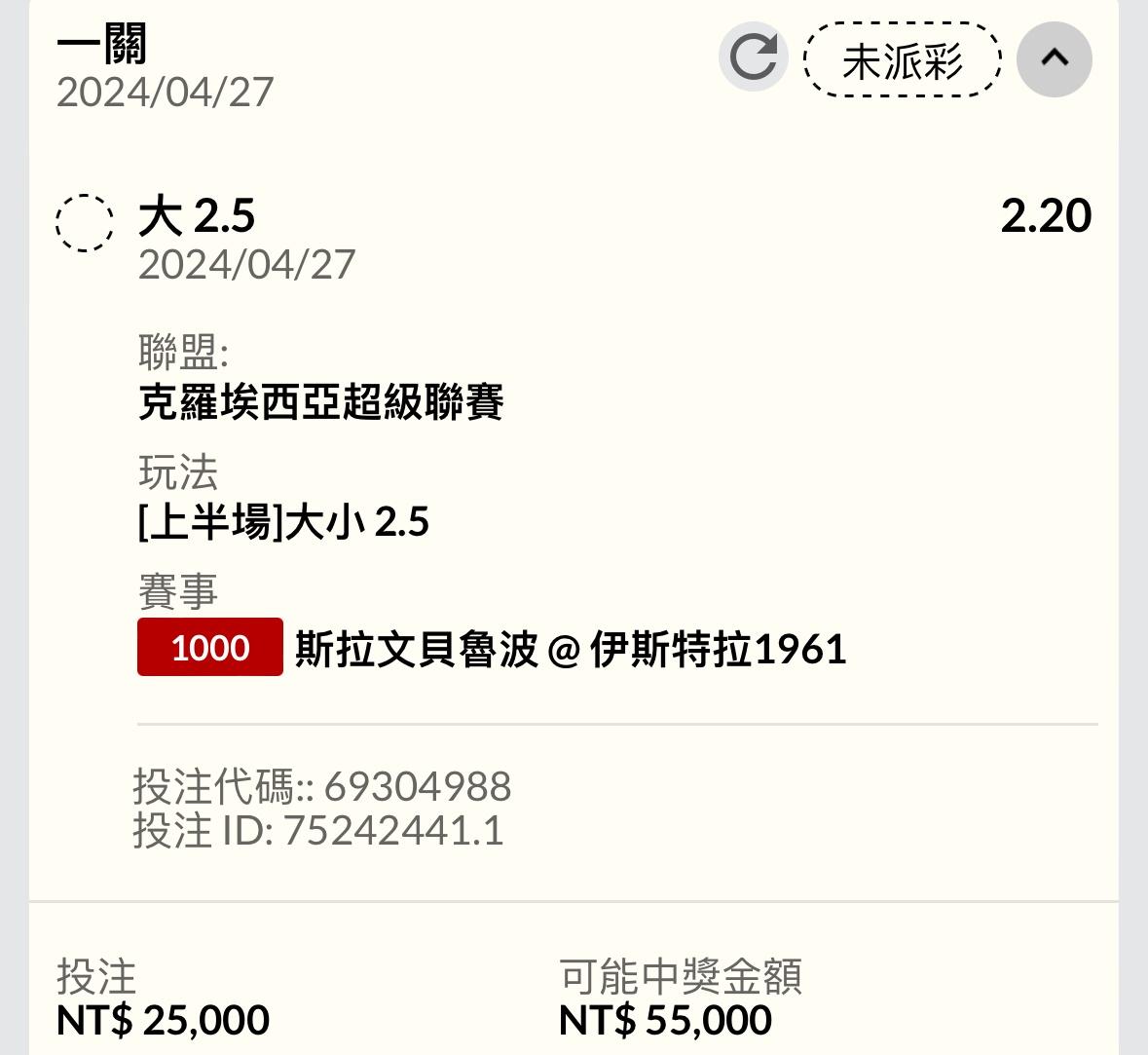 推 alwayswin: 上半2.5大賠率上來了 36.230.209.232 04/27 00:21
