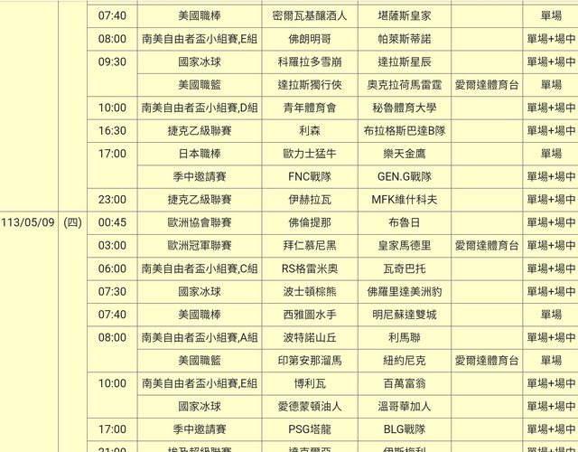 標題[官方] 113-05-08 單場場中