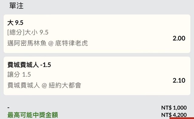 老虎馬林魚9.5大* 費城人-1.5
