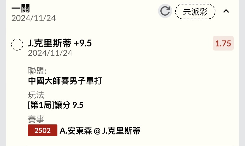 → peter5140: 第一盤主 +9.5 中獎 1.200.66.236 11/24 17:29