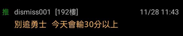 推 dismiss001: 別追勇士 今天會輸30分以上 42.78.242.11 11/28 11:43