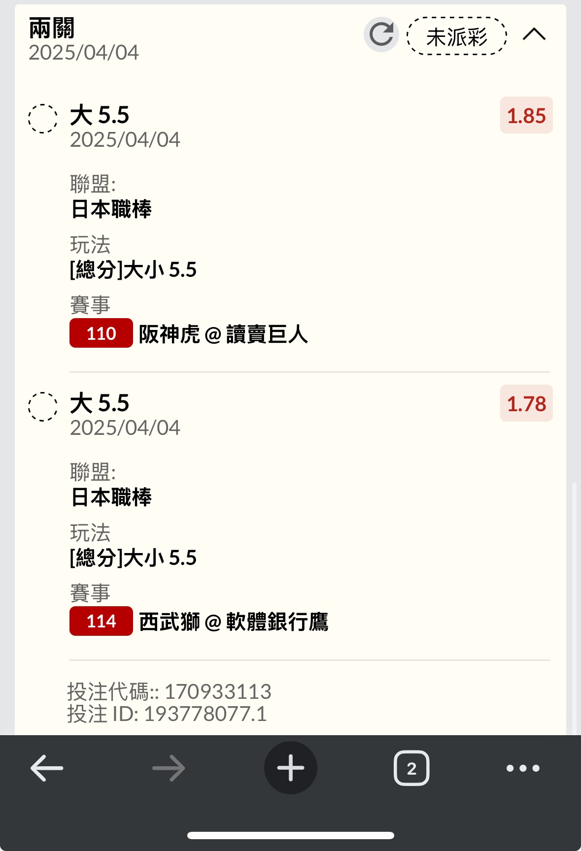 s85569461: 阪神升賠了 5.5大1.85 36.229.136.125 04/04 14:40
