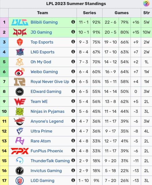 TES、WBG、OMG、RNG、NIP、RA
