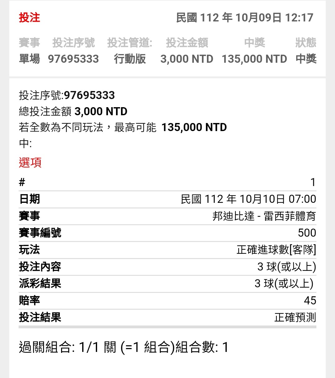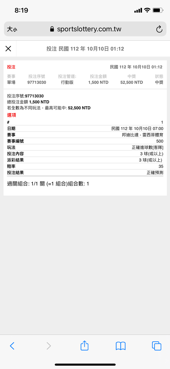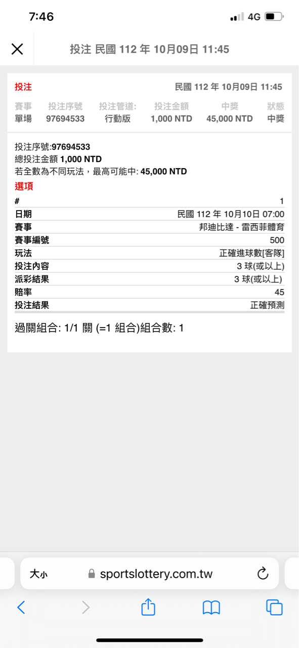 推 BLH: 客3有32倍,想說買個樂透就鎖了== 42.75.191.114 10/10 07:06