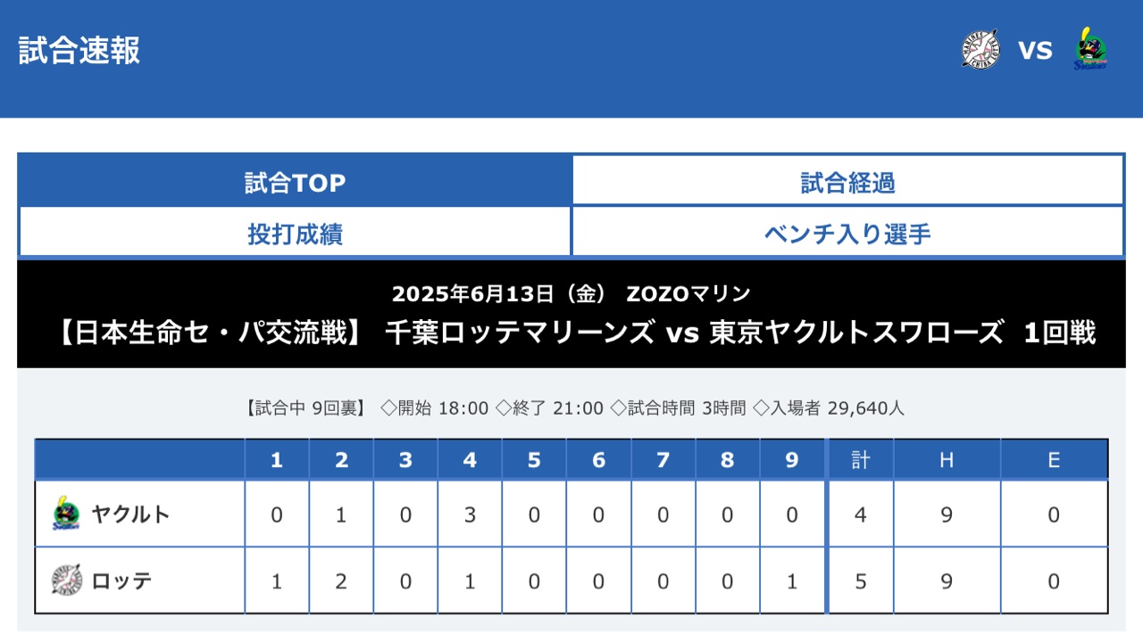 2025 日本プロ野球交流戦 06/13金曜日 ZOZOマリンスタジアム https://i.imgur.com/BXGfQmc.jpeg 東京ヤクルトスワローズ 17-37-2 千葉ロッテマリーンズ 21-35-0 養樂多燕子 2.00 -- ※ 發信站: 批踢踢實業坊(www.ptt-website.tw), 來自: 42.79.241.127 (臺灣) ※ 文章網址: https://www.ptt-website.tw/SportLottery/M.1749799113.A.AC2