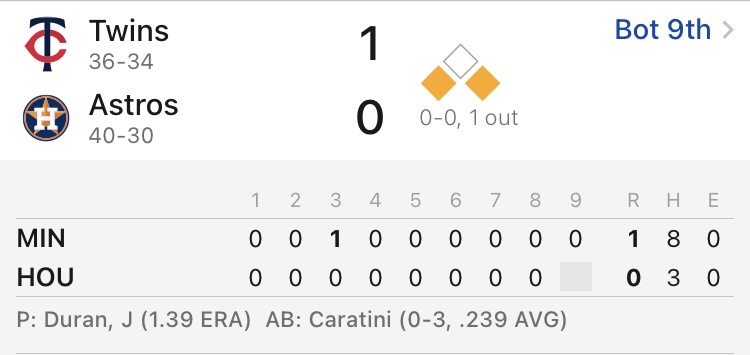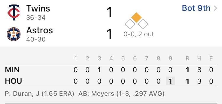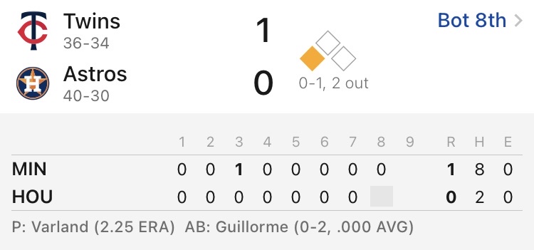 2025 Major League Baseball regular season Daikin Park, Houston, Texas Minnesota Twins 36-34 Houston Astros 40-30 休士頓太空人 勝 1.60 休士頓太空人1分 4.00 -- ※ 發信站: 批踢踢實業坊(www.ptt-website.tw), 來自: 42.79.225.232 (臺灣) ※ 文章網址: https://www.ptt-website.tw/SportLottery/M.1750010790.A.7CB
