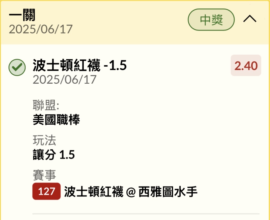 推 workallday: 單場買高賠紅襪42.78.92.64 06/17 10:09