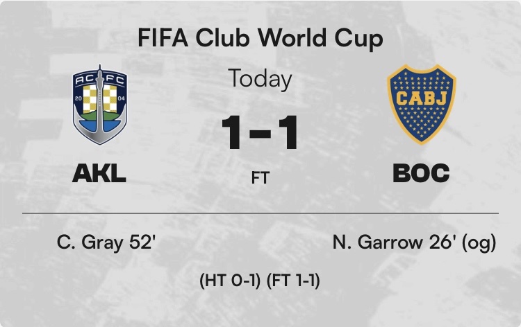 https://i.imgur.com/DYLeccv.jpeg Boca Juniors 小組賽 本菲卡2:2博卡青年 小組賽 博卡青年1:2拜仁慕尼黑 Auckland City 小組賽 奧克蘭城0:10拜仁慕尼黑 小組賽 奧克蘭城0:6本菲卡 博卡青年 勝 博卡青年2:0奧克蘭城 13.00 -- ※ 發信站: 批踢踢實業坊(www.ptt-website.tw), 來自: 111.83.147.45 (臺灣) ※ 文章網址: https://www.ptt-website.tw/SportLottery/M.1750780852.A.87A