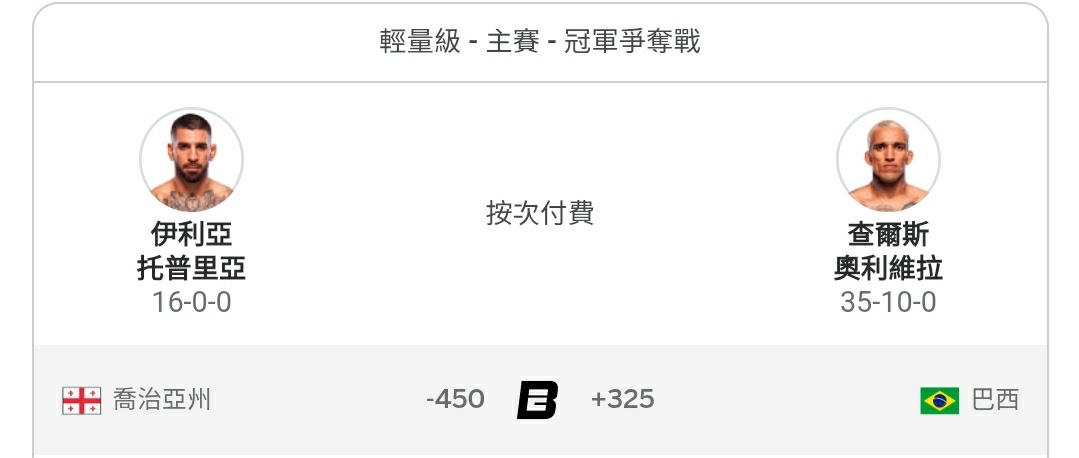 奧利維拉賠率是托普里亞的近15倍