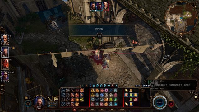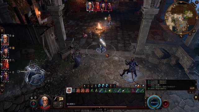 這時候四隻角色都還是由我控制的,可以看到選塔夫時,其他三人角色框的顏色是代表敵人的紅色,選擇其他角色時塔夫是淡淡的紅色,對友方施放的祝福術也不能對塔夫施放