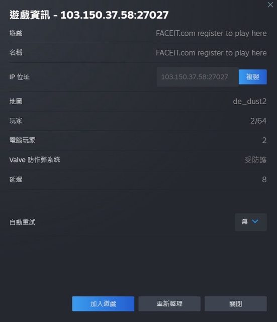 標題[閒聊] cs2 faceit 刷到台灣服?
