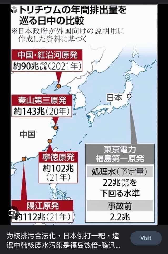 → thegiver210 : 顯然中國核電廠排放的氚比日本的安全多了 一氚各表 07/20 08:11