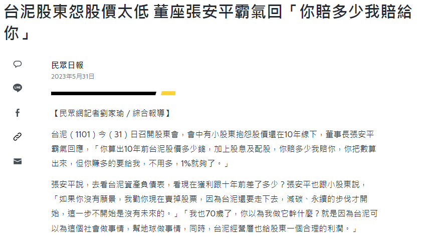 推 pk0943 : 我不懂的是台股這麼多好公司,為什麼非台泥不可? 07/21 21:04