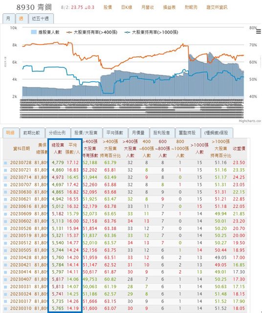 大戶持股比例雖無明顯上升,但平均張數/人持續上升,可能有人利用人頭戶偷吃籌碼