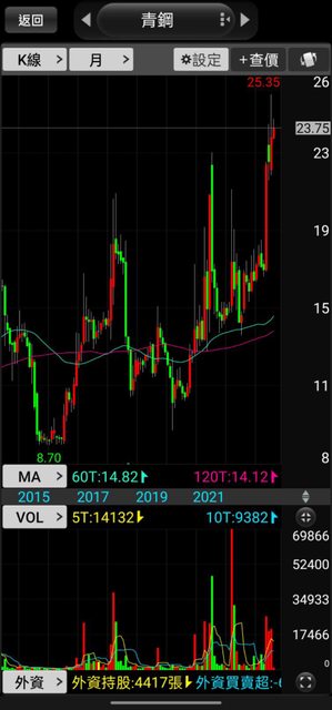 如同標題所述,青鋼正在創歷史新高,以位階來說青鋼是個不夠安全的標的,但股價不會平