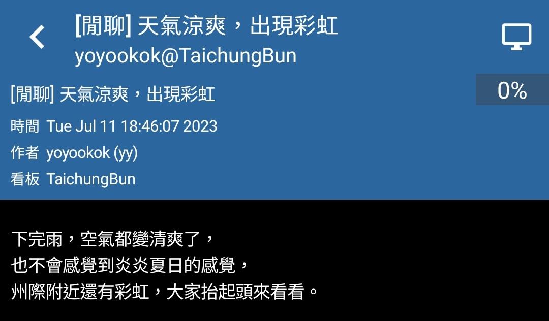 標題[閒聊] 天氣涼爽,出現彩虹