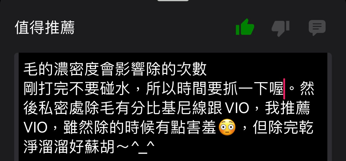 推 taehoat : 做雷射除毛的前3天要記得先刮毛哦 因為私密處的毛毛 07/17 23:53