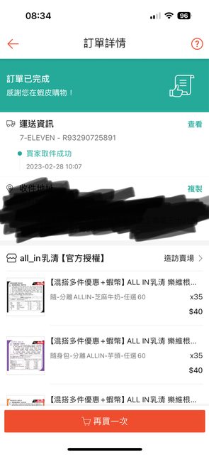 今年二月底於蝦皮all in賣場購入