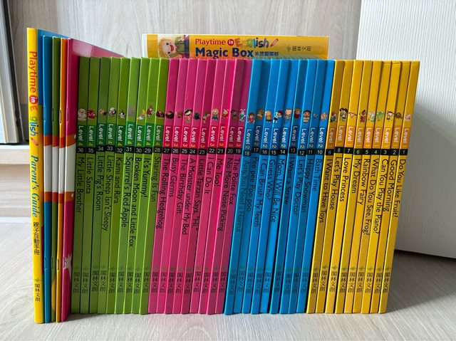 物品A:Playtime in English套書(36本)& DVD+CD 價格:$1500 購入約4年時間,多少有翻閱的痕跡,大約8.9成新,無點讀筆,親子互動手冊和Workbook 都是幾近全新(無筆記)
