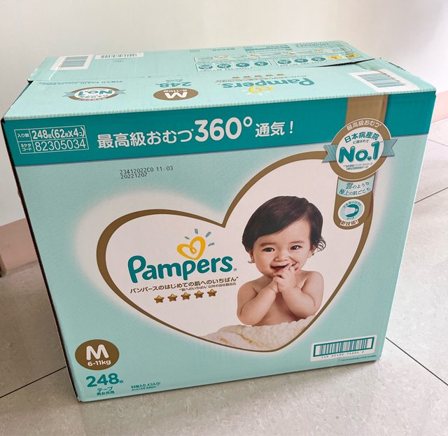 (2) 幫寶適一級幫尿布 黏貼M號 248片。$1200