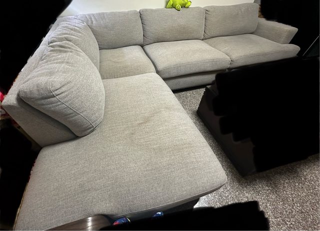 物品A/價格:L型大沙發+一個椅凳$3000 購自好市多$27549 沙發很好坐,很容易睡著 L型可以拆開搬 有貓咪使用的痕跡 髒污處請見照片 因重新規劃客廳空間故售出 自取自搬有電梯