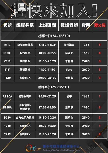 標題[閒聊] 有人想來上朝馬運動中心的課嗎?