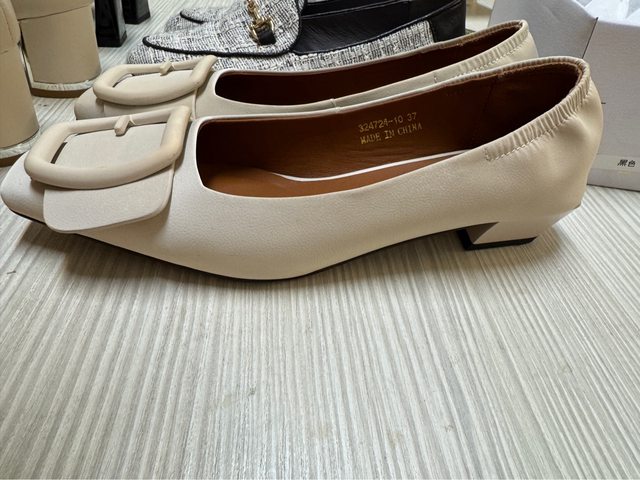 4. 九成新專櫃貨 低跟米白氣質淑女鞋,售價:NT.400