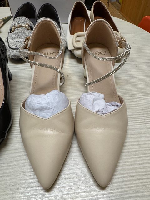 2. 九成新專櫃貨 白色帶鑽尖頭瑪麗鞋,售價: NT.400