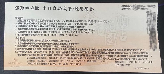 標題[商業] 裕元花園酒店自助餐券
