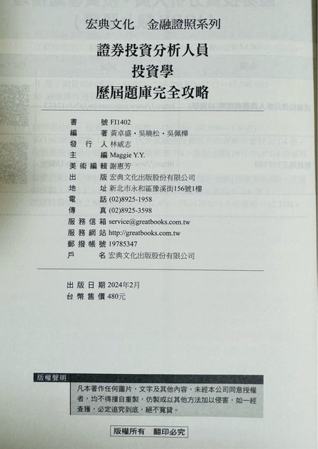 商品名稱* :證券投資分析人員 投資學題庫