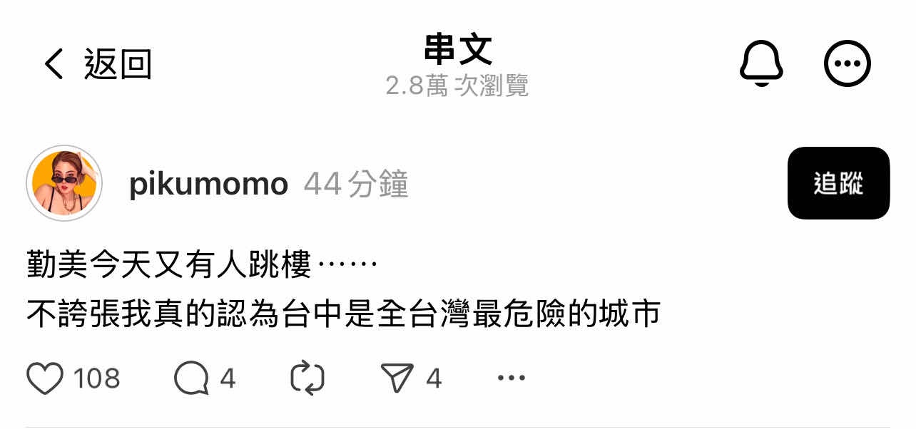 噓 jienr: 搞不好就是南部人跑來台中跳樓的 118.86.179.98 03/18 17:36