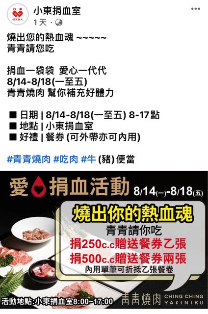 標題[情報] 小東路捐血8/14-8/18送餐券