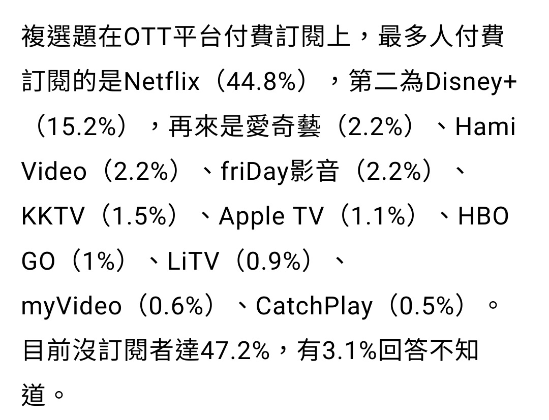 → freda0721: 這調查少了LINE TV?很多台劇跟台綜獨播,也有原創戲劇 05/13 09:25