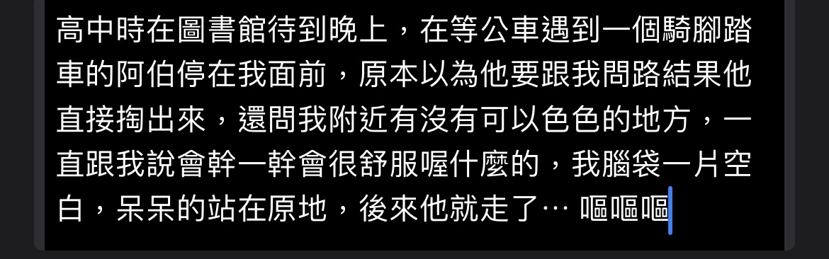 → yuki30119 : 當時根本不知道怎麼反抗,我記得我 101.10.106.217 06/30 08:01