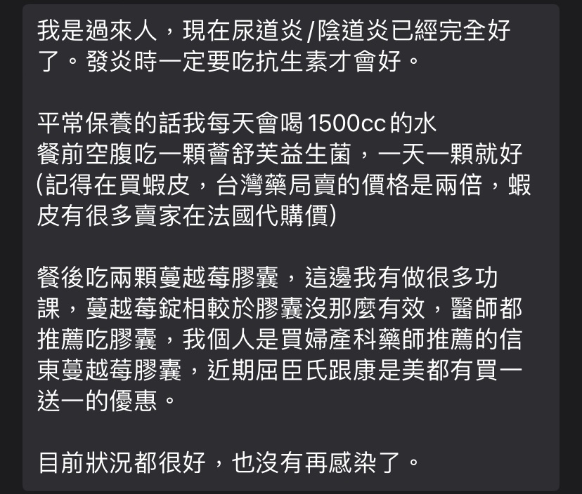 推 tanyawai : 吃藥局賣的蔓越莓錠,平時吃一顆, 1.175.91.181 09/05 21:43