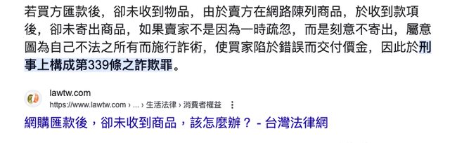 → ZIDENS : 很多那種轉帳後不出貨的要告都沒告成 08/10 22:34