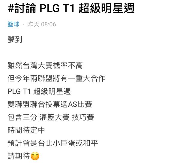 推 caseywvt : 想看PT組明星隊vs新北國王 11/11 12:22